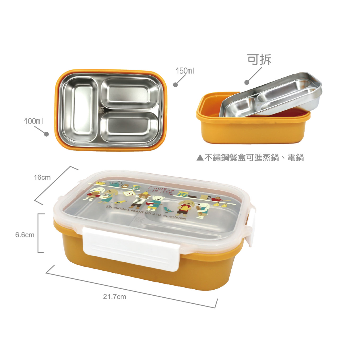 3.可拆,不鏽鋼餐盒可進蒸鍋、電鍋。