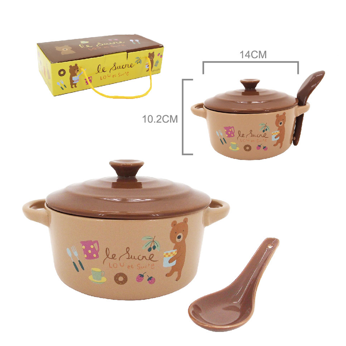 LOU露小熊5.5吋陶瓷蓋碗組-附匙